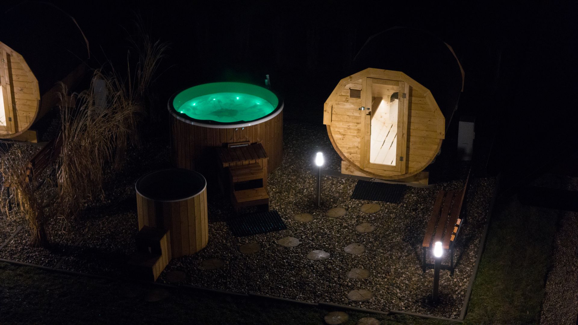 - Prywatna sauna sucha: z tradycyjną beczką do schładzania.