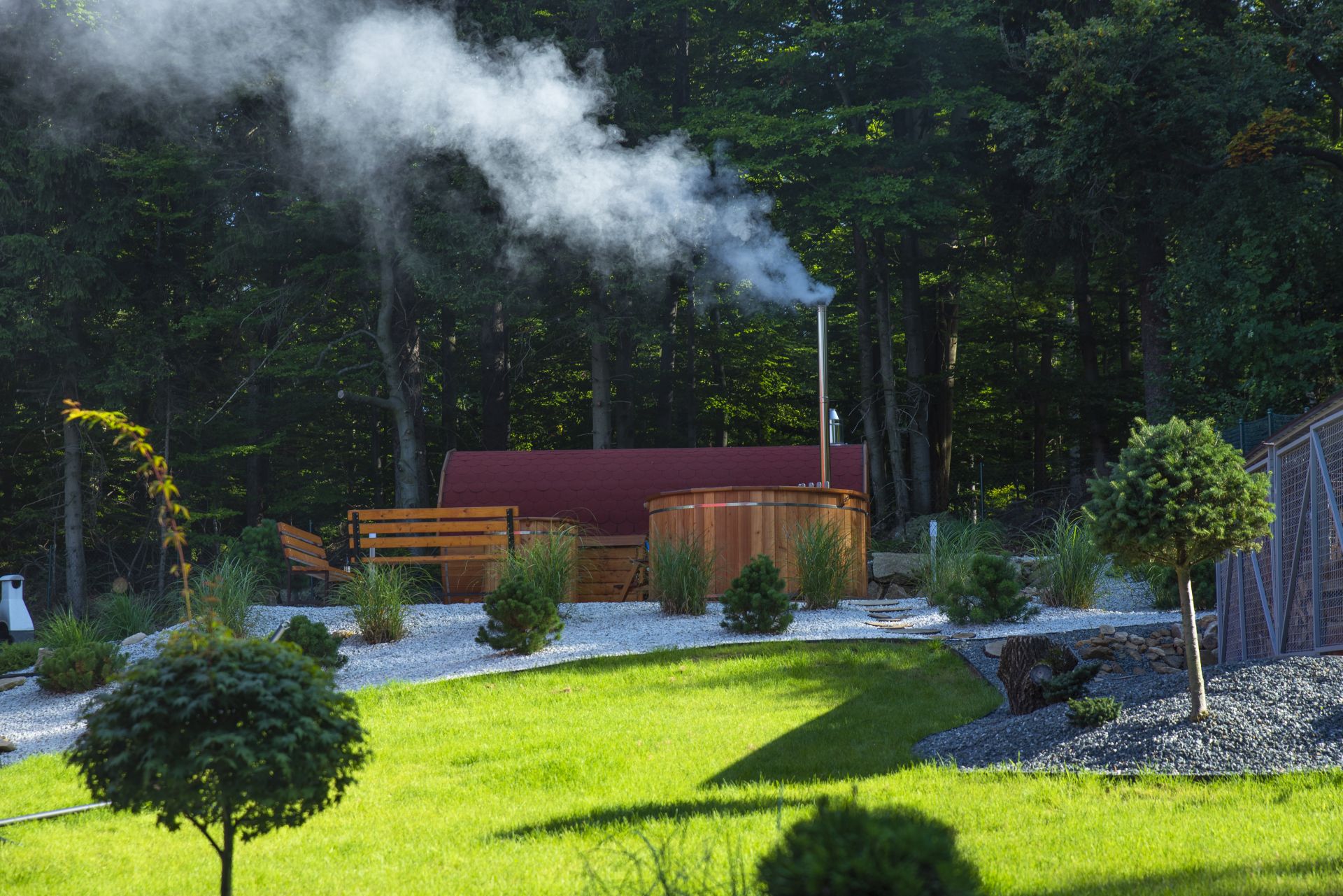 - Możliwość wynajęcia 8-osobowej balii z hydromasażem: opalana drewnem, dostępna cały rok.