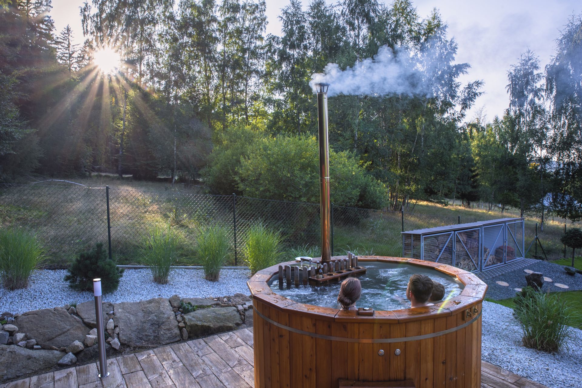 - Możliwość wynajęcia 8-osobowej balii z hydromasażem: opalana drewnem, dostępna przez cały rok.