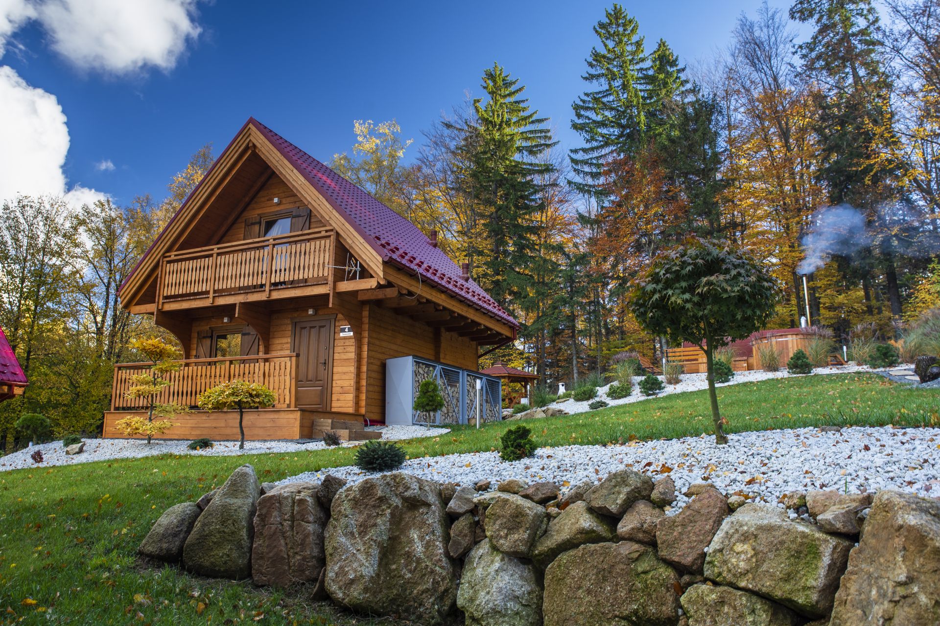 - Możliwość wynajęcia 8-osobowej balii z hydromasażem: opalana drewnem, dostępna przez cały rok.