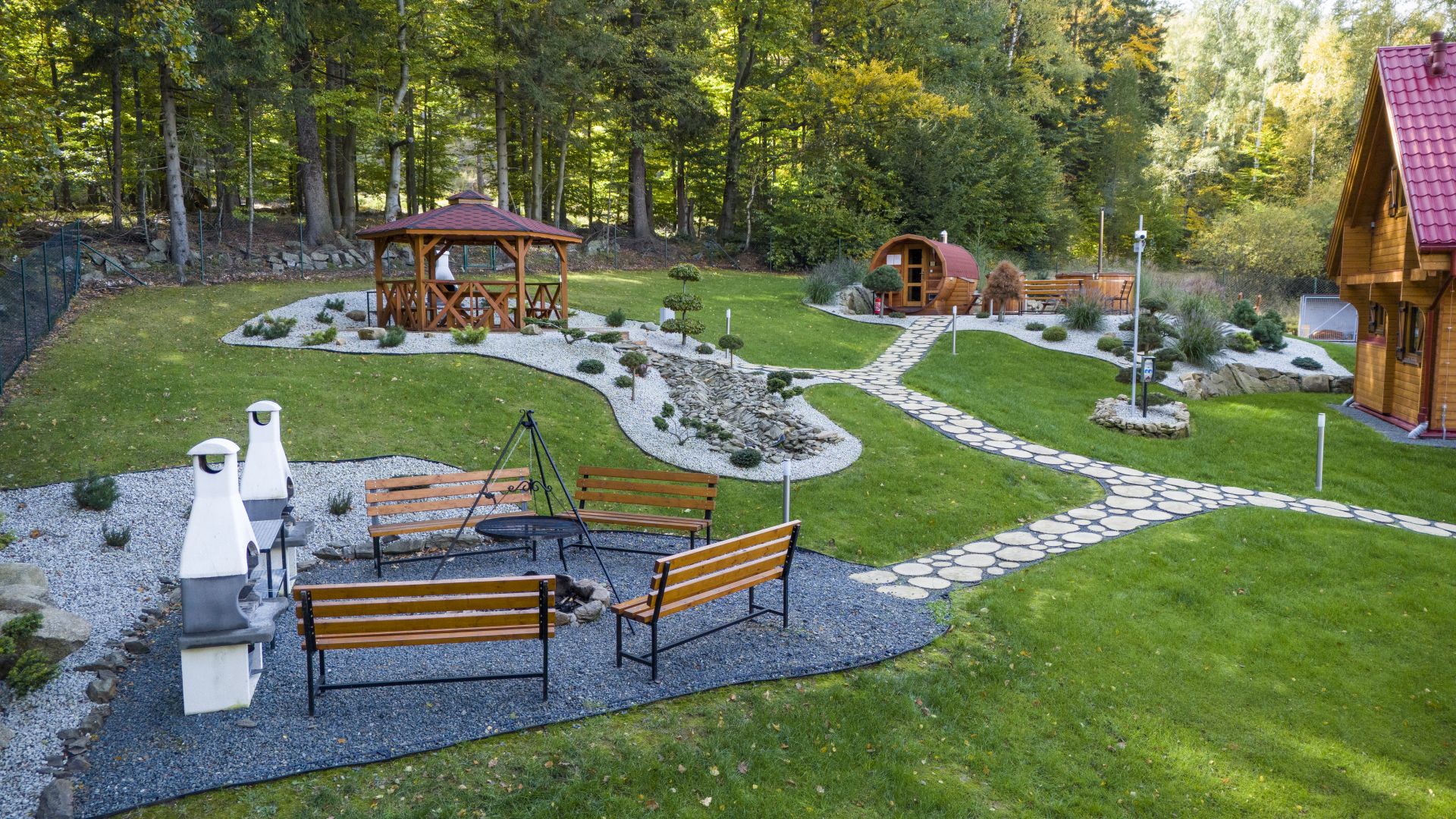 - Wydzielone miejsce na ognisko oraz murowane grille.
