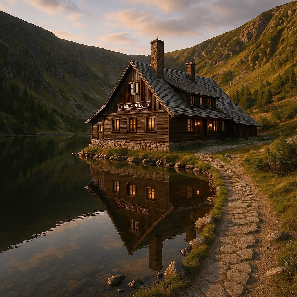 Jedno z najstarszych i najbardziej klimatycznych schronisk w Polsce, położone tuż nad taflą Małego Stawu. Drewniany budynek wciśnięty w kocioł polodowcowy tworzy bajkowy krajobraz. Łatwo dojdziesz tu z Karpacza przez Polanę Małą — świetny cel nawet na półdniową wycieczkę.