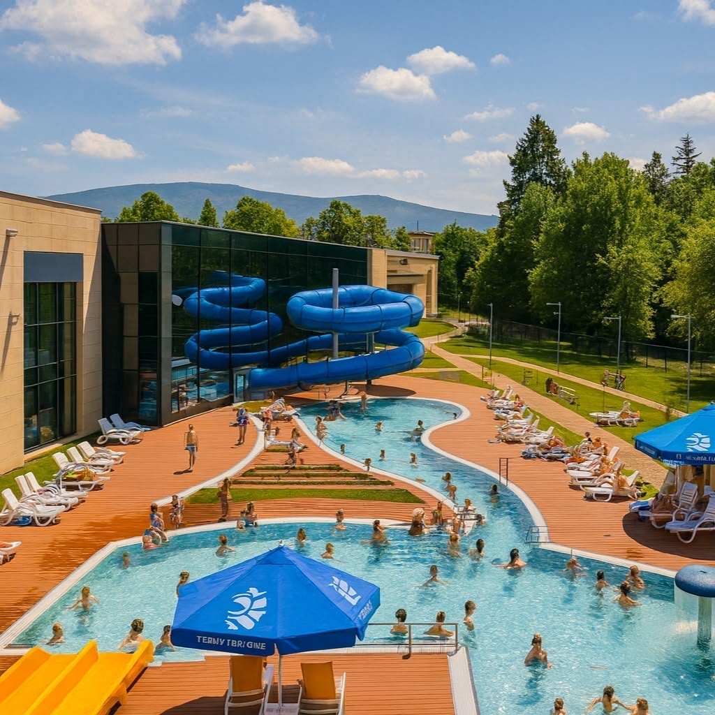 Nowoczesny kompleks basenów termalnych z częścią rekreacyjną, zjeżdżalniami i strefą relaksu. Wody termalne słyną z korzystnego składu i przyjemnej temperatury, dobrej po całodziennym zwiedzaniu gór. To świetna opcja na rodzinny odpoczynek lub regenerację po szlaku.